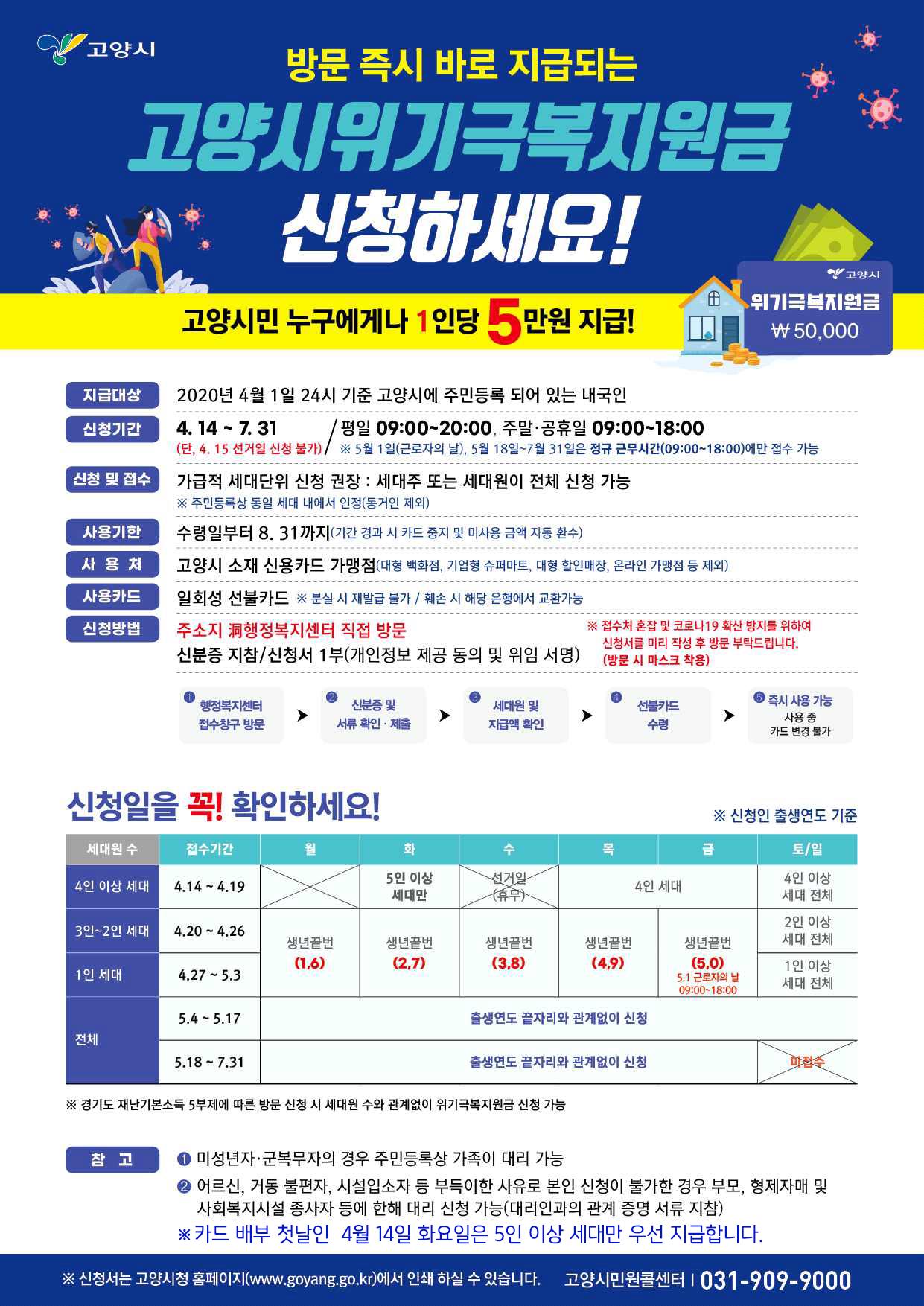 고양시 위기극복지원금▶ 고양시에서 지급하는 지원금으로 1인당 5만원