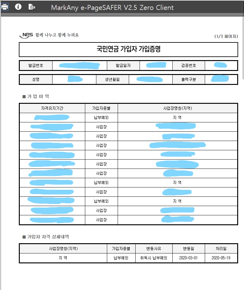 p.s. 가입자종별의 납부예외인 경우에도 증명서에 그대로 출력됩니다. 이 기간은 실업중인 상태를 의미합니다.