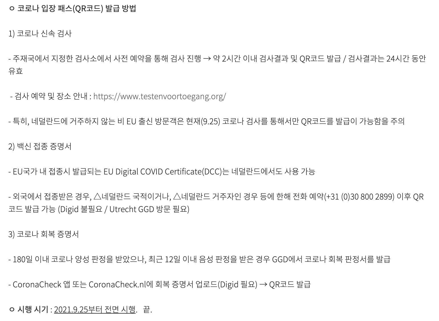 지난달 9월 25일부터 코로나패스의 전면 확대라니....