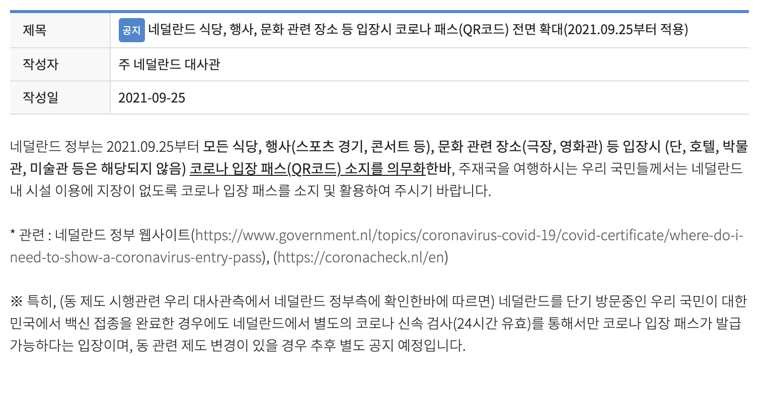 #12 <위드코로나> 네덜란드의 새로운 코로나 정책 발표 안녕하세요! 담담입니다! 이번 칼럼에서는 네...