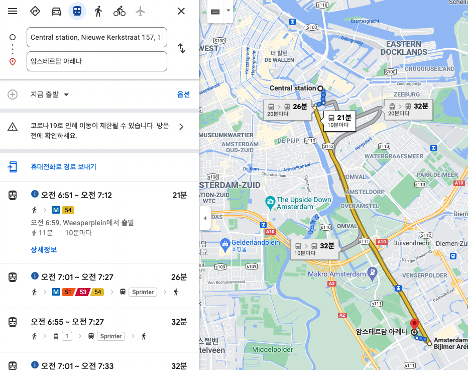 암스테르담 아레나로 가기 위해서는 다양한 방법이 있지만