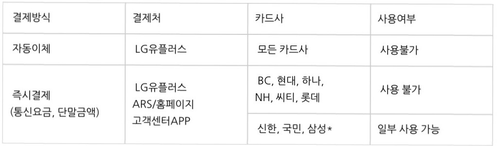 원칙적으론 불가능합니만, LG U+ 기준으로 설명드리면 신한, 국민, 삼성카드로 통신비&단말기 할부금 납부가 가능합니다.