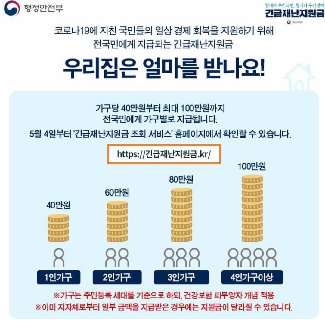 대한민국 정부는 이번 5월 11일부터 전국민에게 긴급 재난지원금을 지급하기 시작하였습니다.