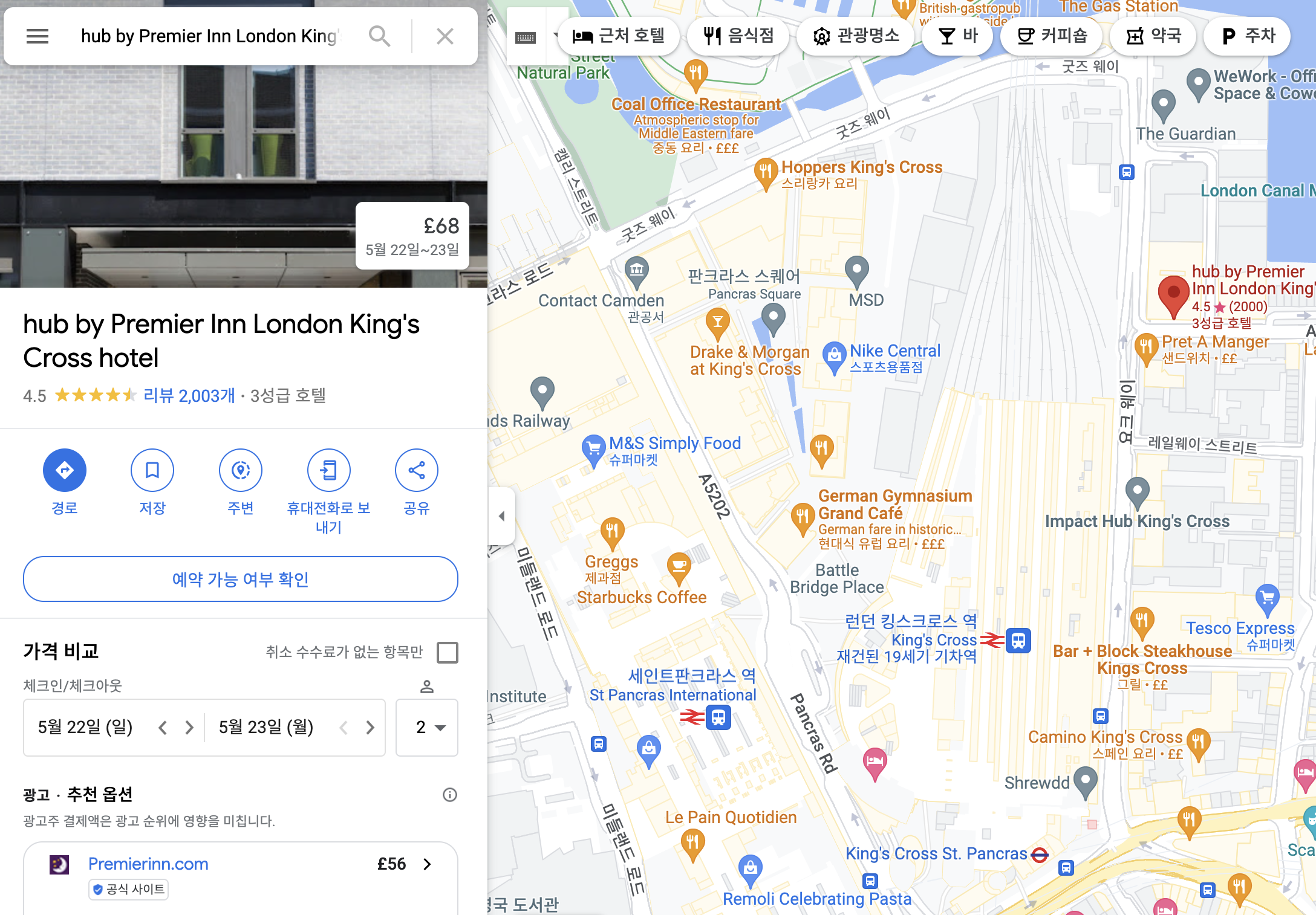 만족한 이유는, 첫번째 사진이 바로 내가 묵었던 Hub by Premier Inn London King's Cross 였기 때문이다