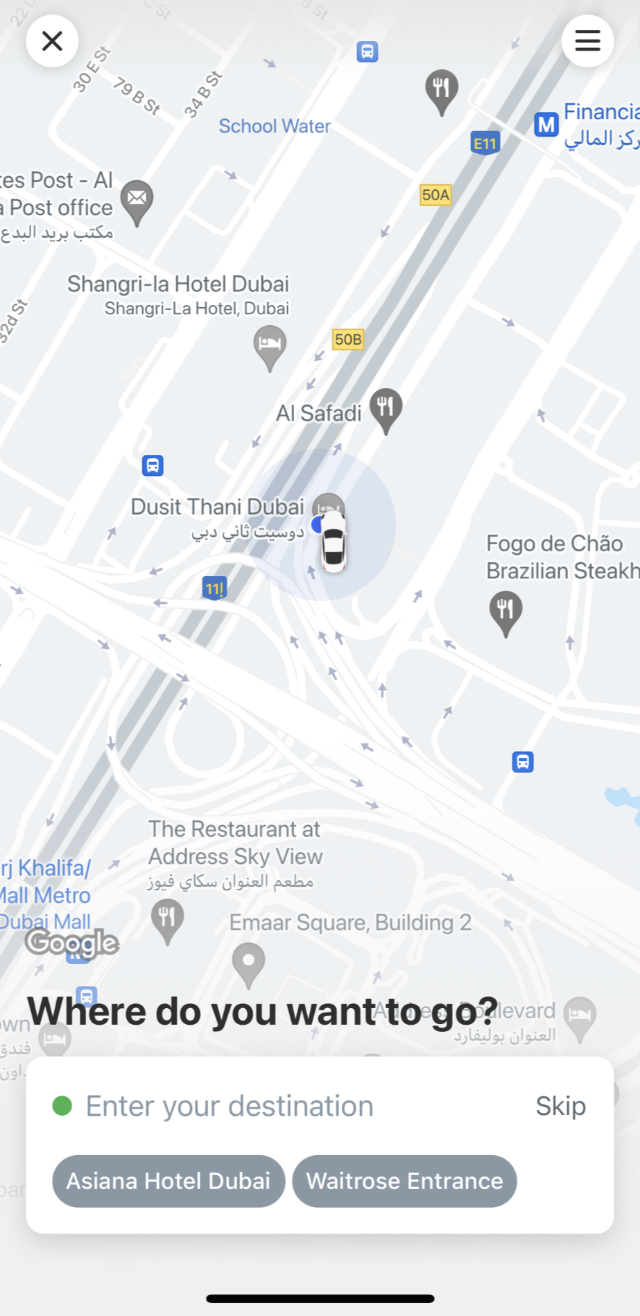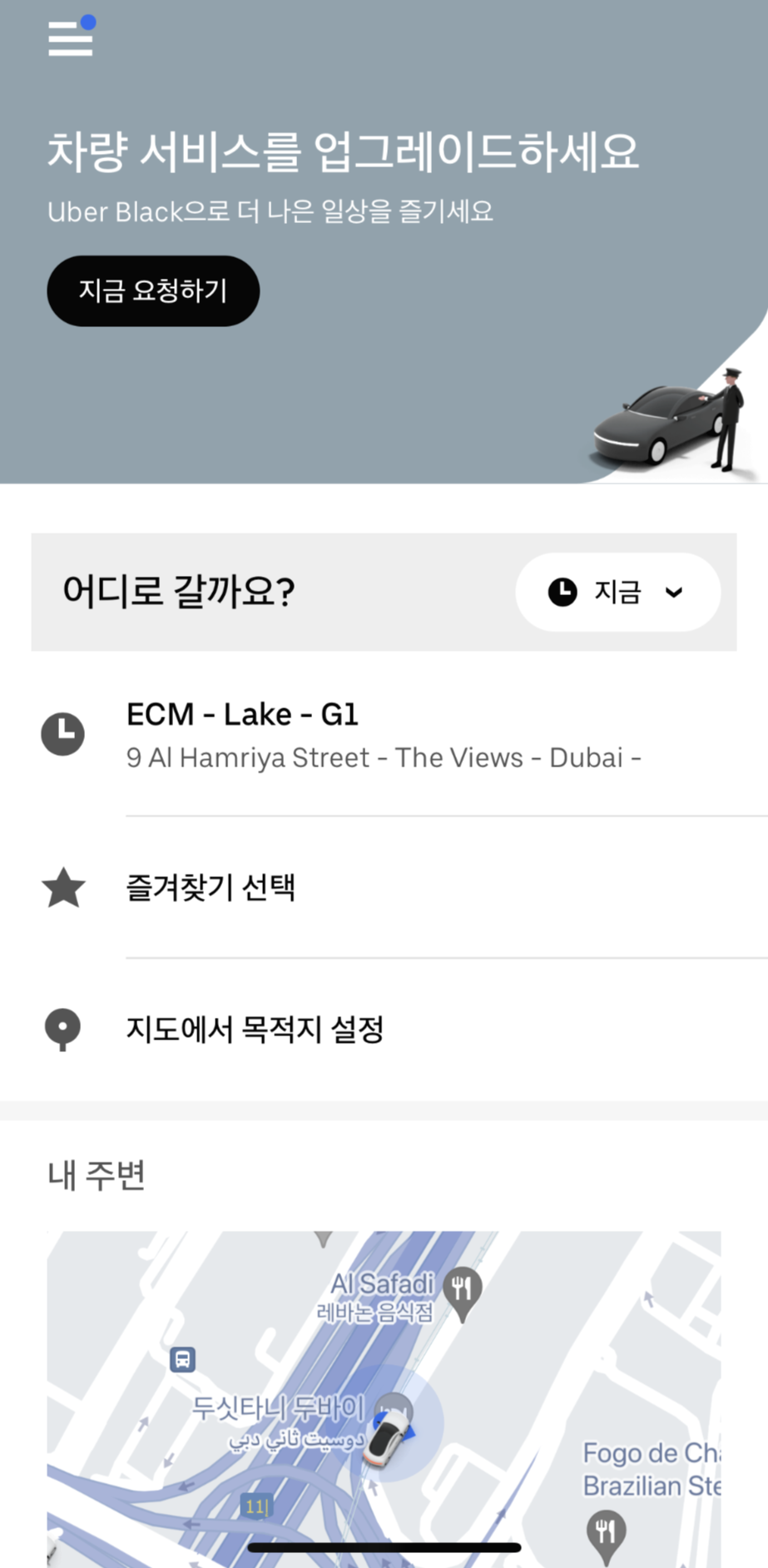 참고로 지도에 차량 표시가 뜨면 근처에 Careem 드라이버가 있다는 뜻이다.