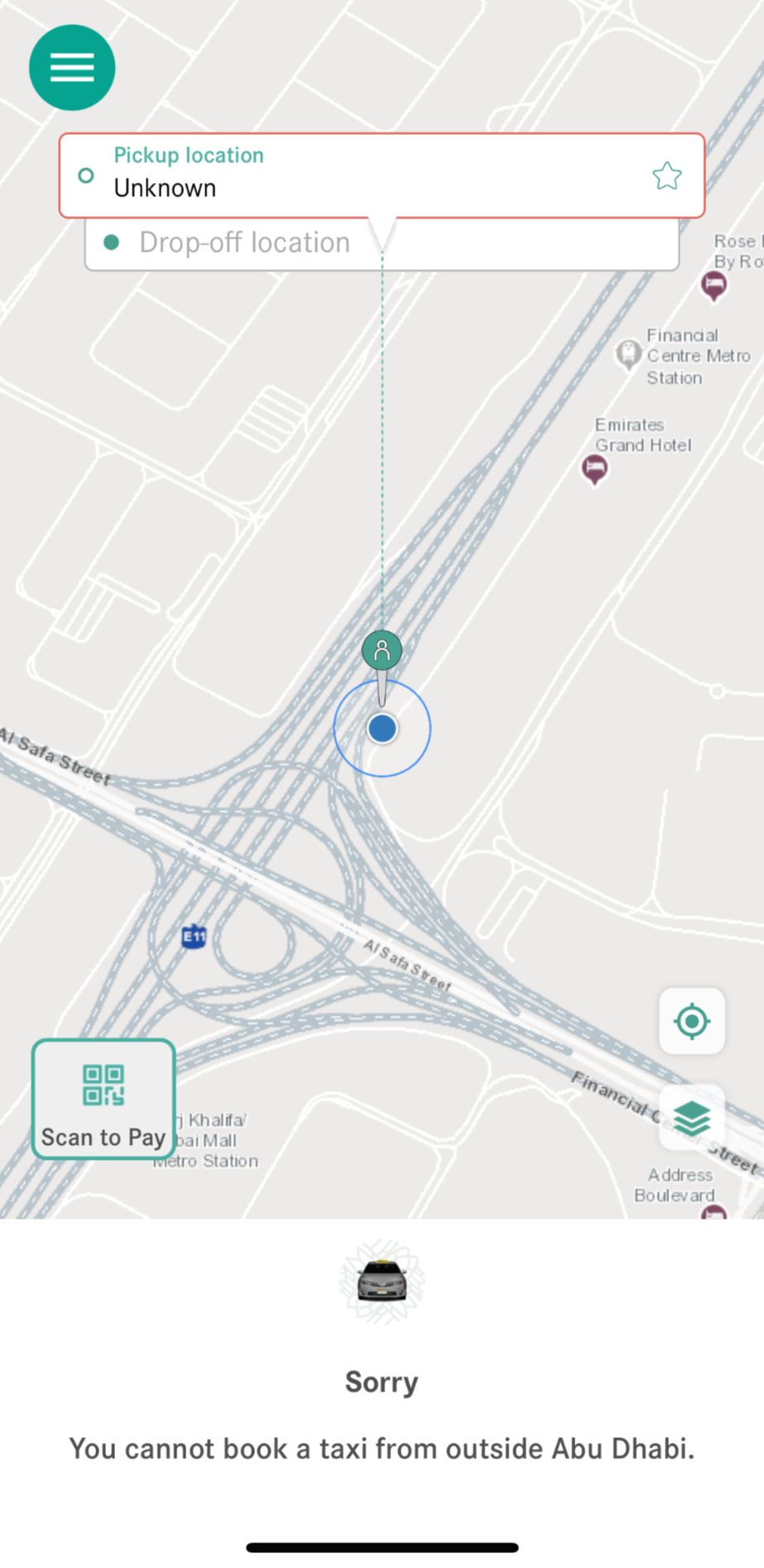 드라이버에게 현금결제 하거나, 혹은 어플내에서 미리 결제 카드를 설정한 후 화면에 보이는 'Scan to Pay'를 이용해