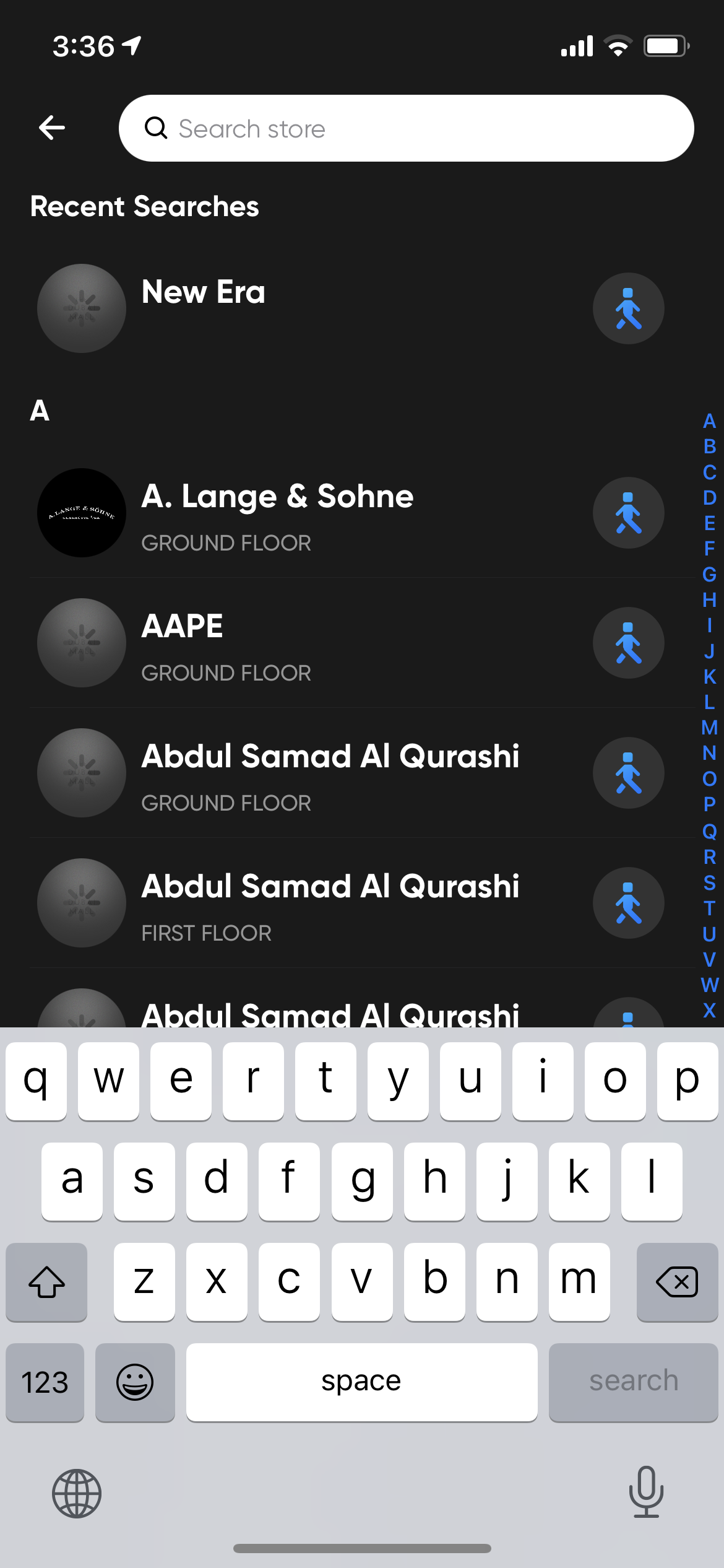 와이파이를 Dubal Mall껄로 연결해주고 앱을 실행후 화면 하단에 있는 추적버튼을 클릭하면 현재 본인의 위치를 정확히 알려준다!