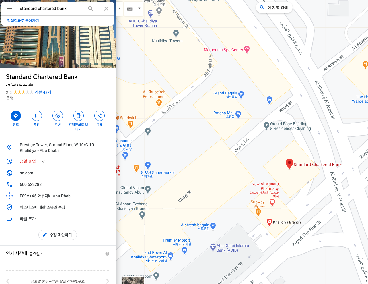 CITI, HSBC, SC는 아부다비에 그렇게 Branch가 많지 않습니다.