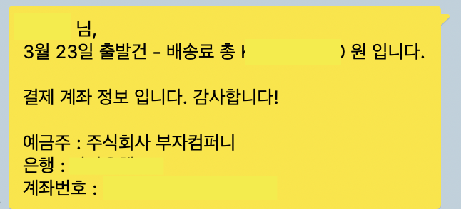 위와 같이 언제 배송된다는 안내 메세지를 받으시면 입금을 진행해주시면 됩니다.