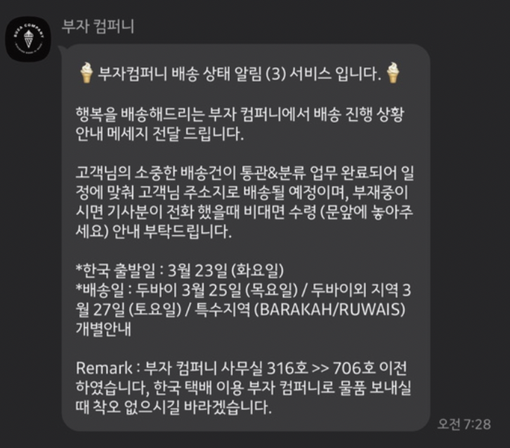 이렇게 한국에서 UAE로 배송보내는 방법에 대해서 알려드렸습니다.