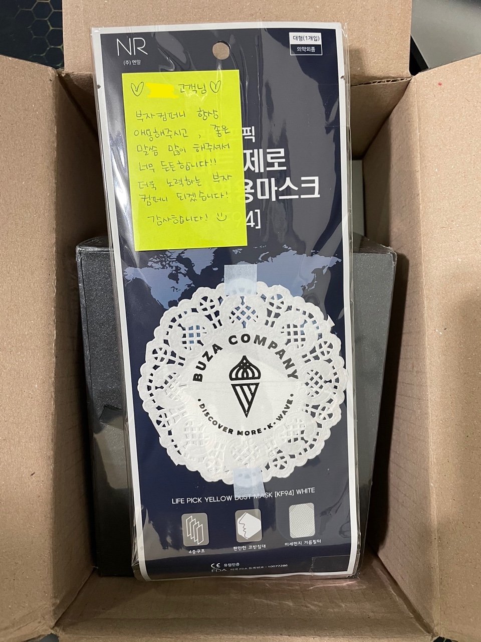 제가 이번에 이용한게 세번째로 진행하였는데, 매 번 제가 고맙다는 감사인사와 항상 승승장구하시라는 응원을 드렸더니 이번에는 이렇게 마스크를 선물해주셨습니다.