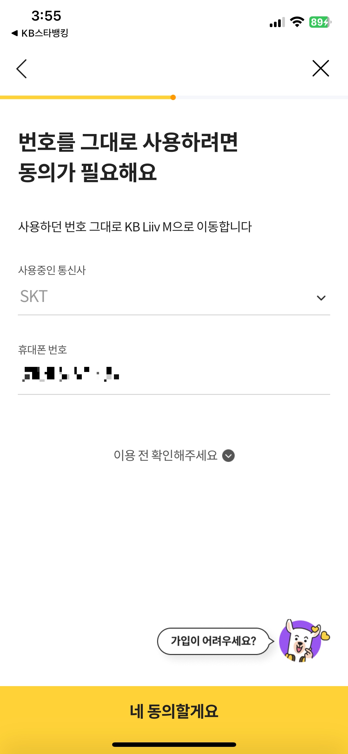 그리고 난 후에 번호이동자는 본인의 번호를 입력하고 나서