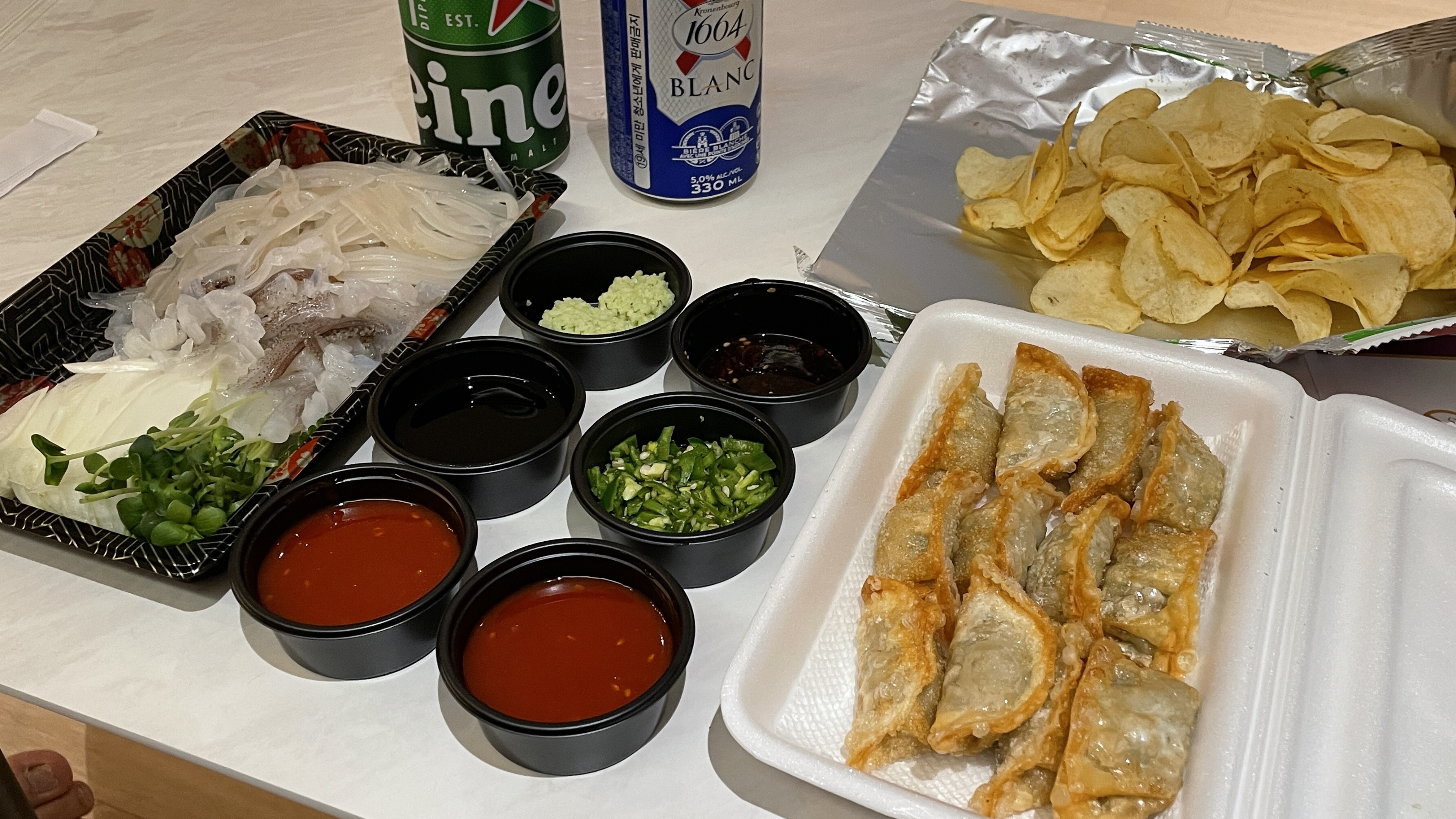 근처 횟집에 전화해 오징어회를 주문했다.