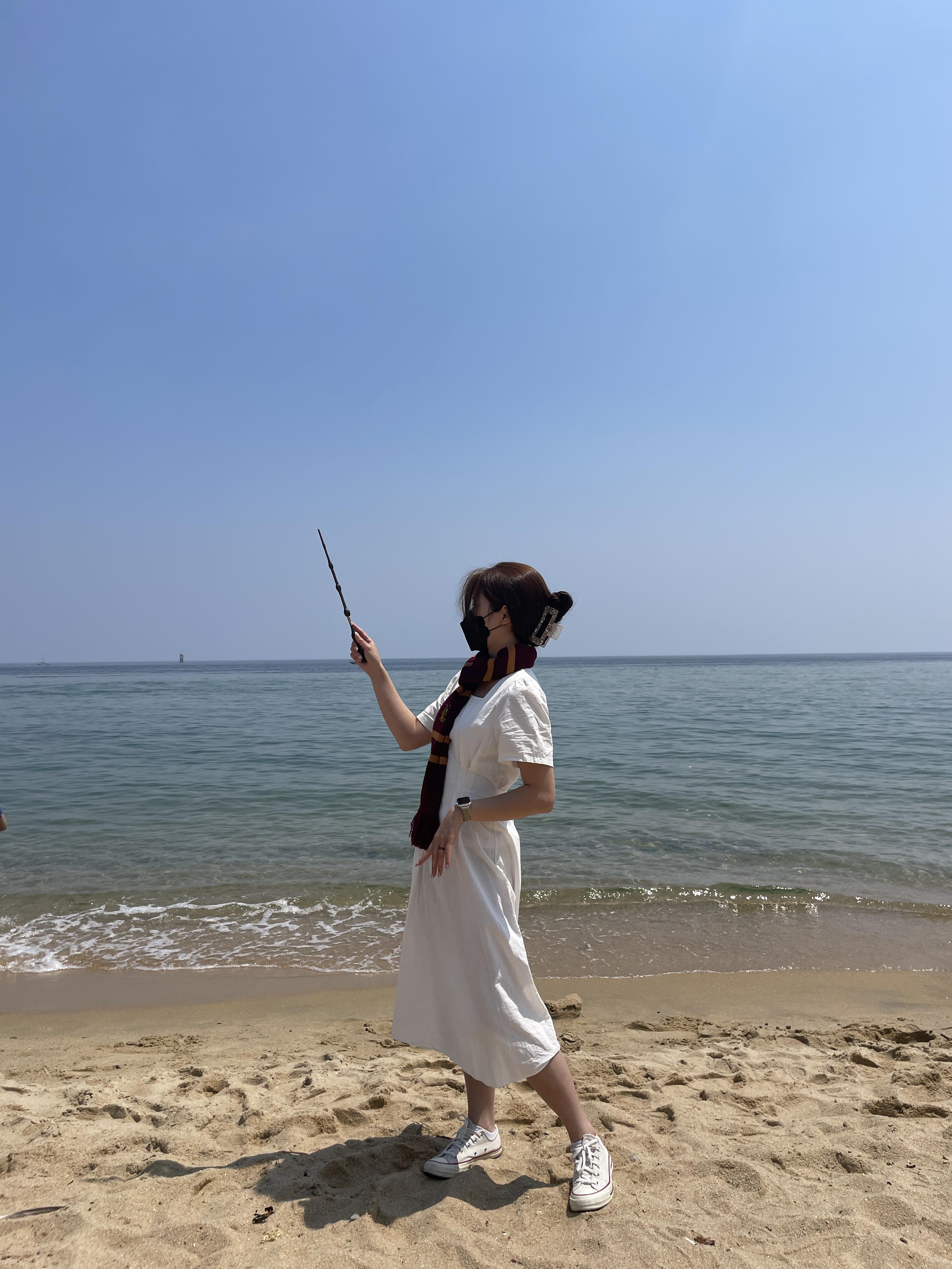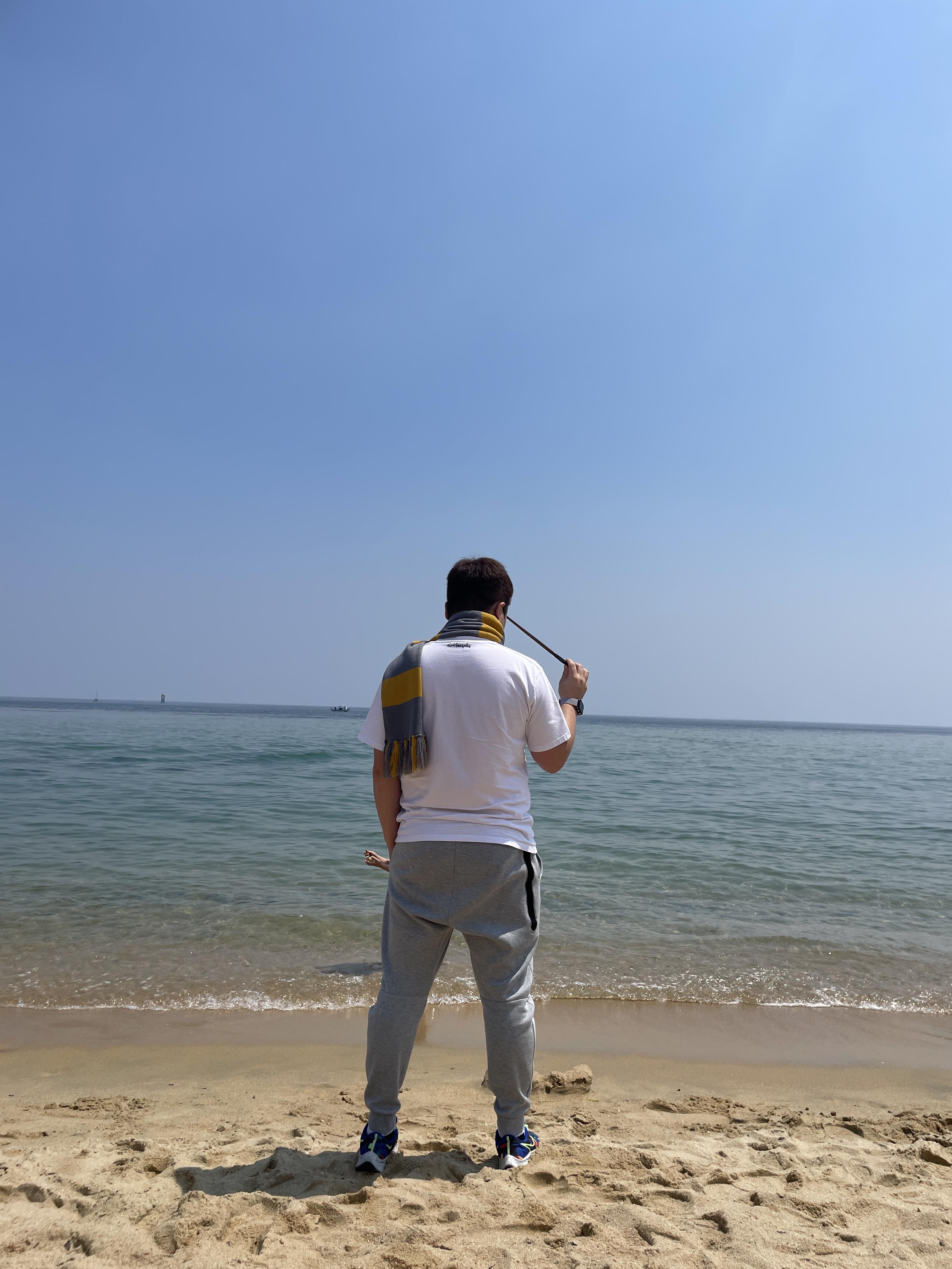 그래서 그 옆에 바다와 모래의 경계에서 먼저 사진을 찍고 있는데 드디어 내차례가 되었다.
