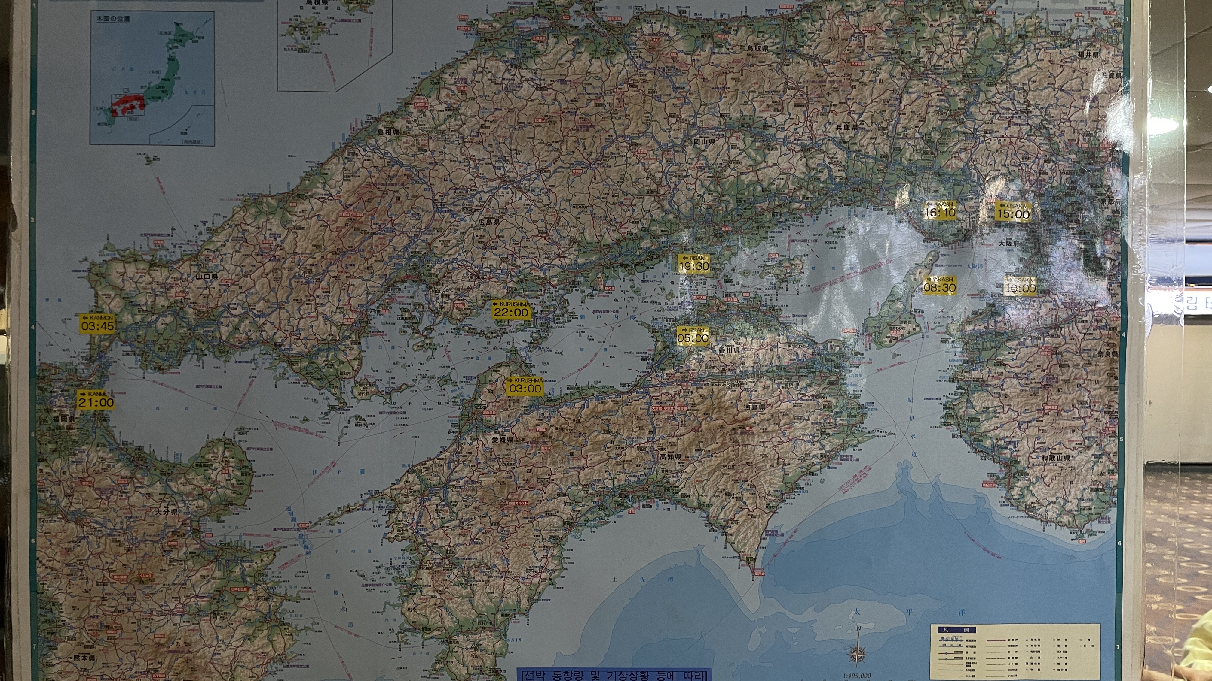 아래쪽이 부산에서 오사카로 들어갈 때의 시간