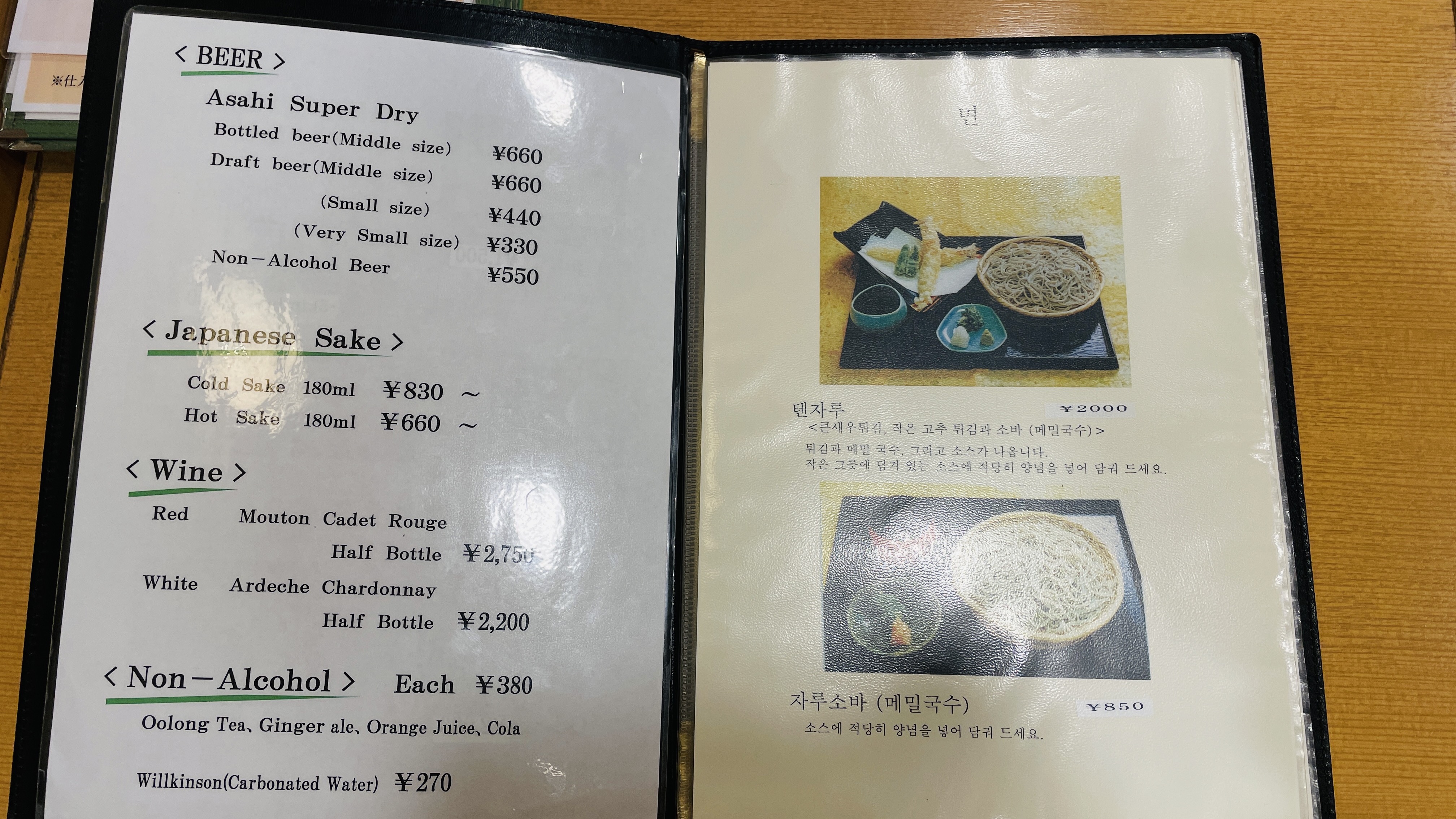 한국인이라고 말씀드리니 한국어 메뉴판을 가져와주셨다
