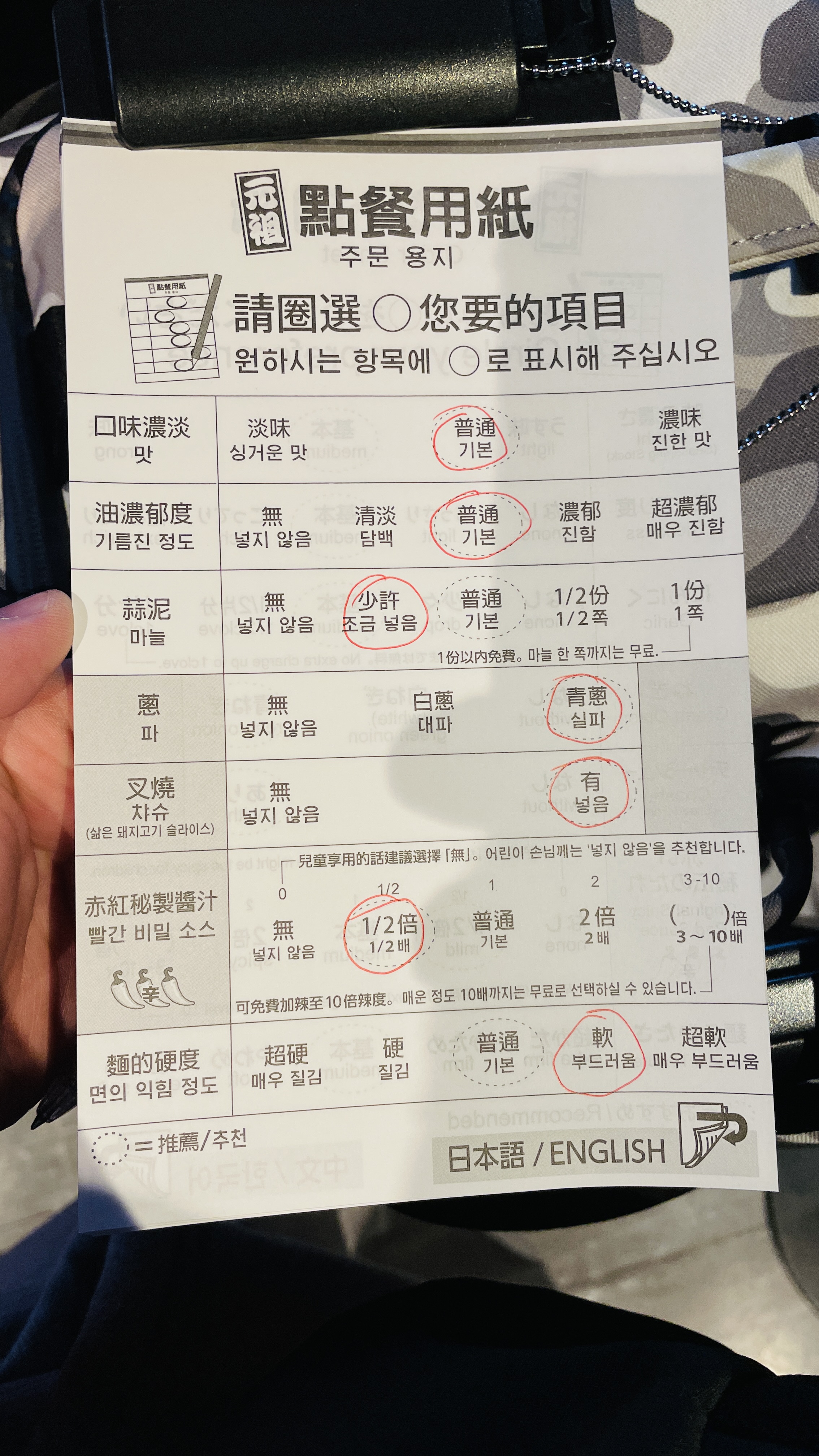 주문하게 되면 왼쪽과 같이 티켓이 나오고 잠시 뒤에 점원이 추가 주문 용지를 준다