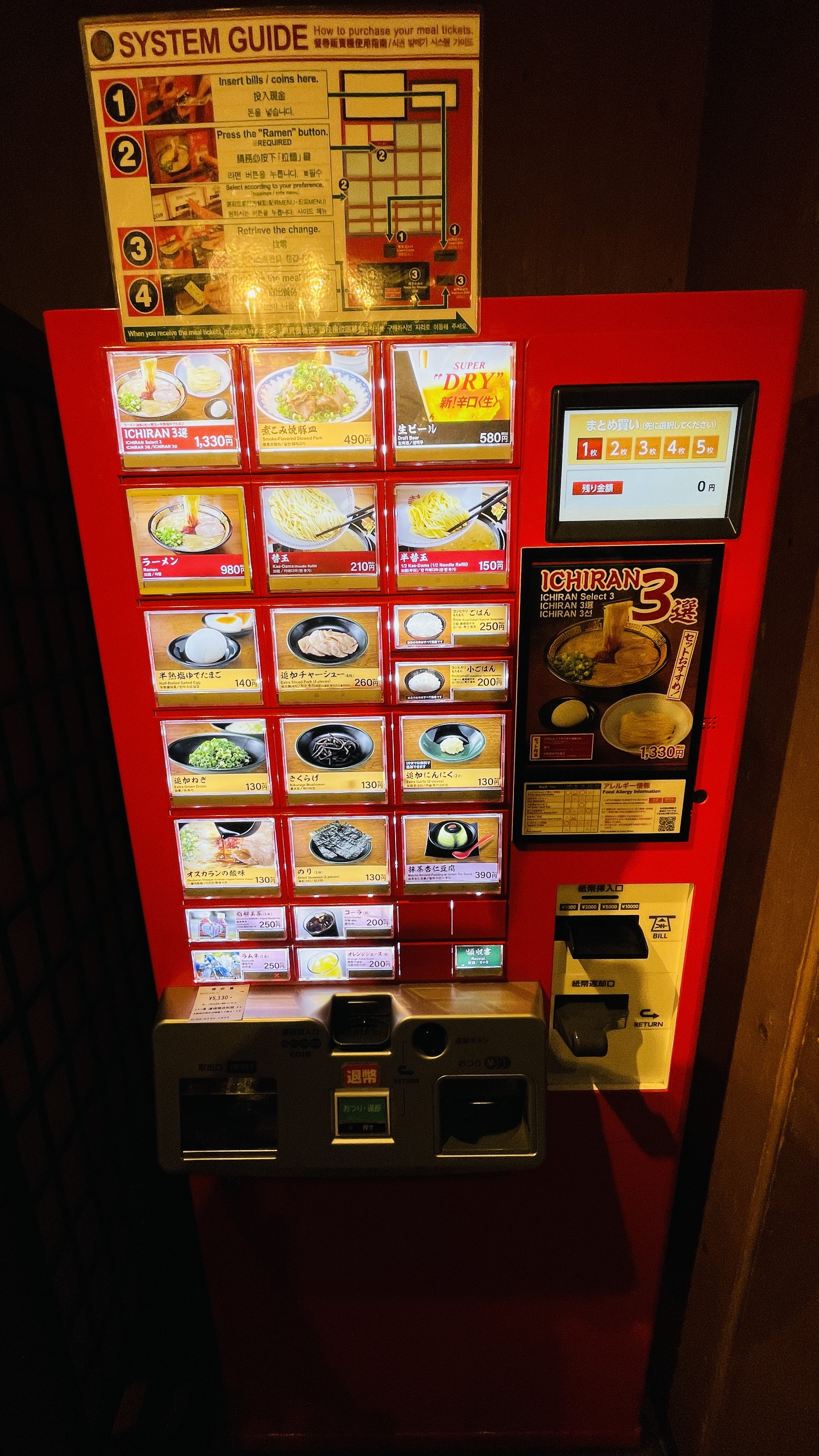 내 수중에 딱 1000엔만 있었기에 라멘이 980엔이었다.