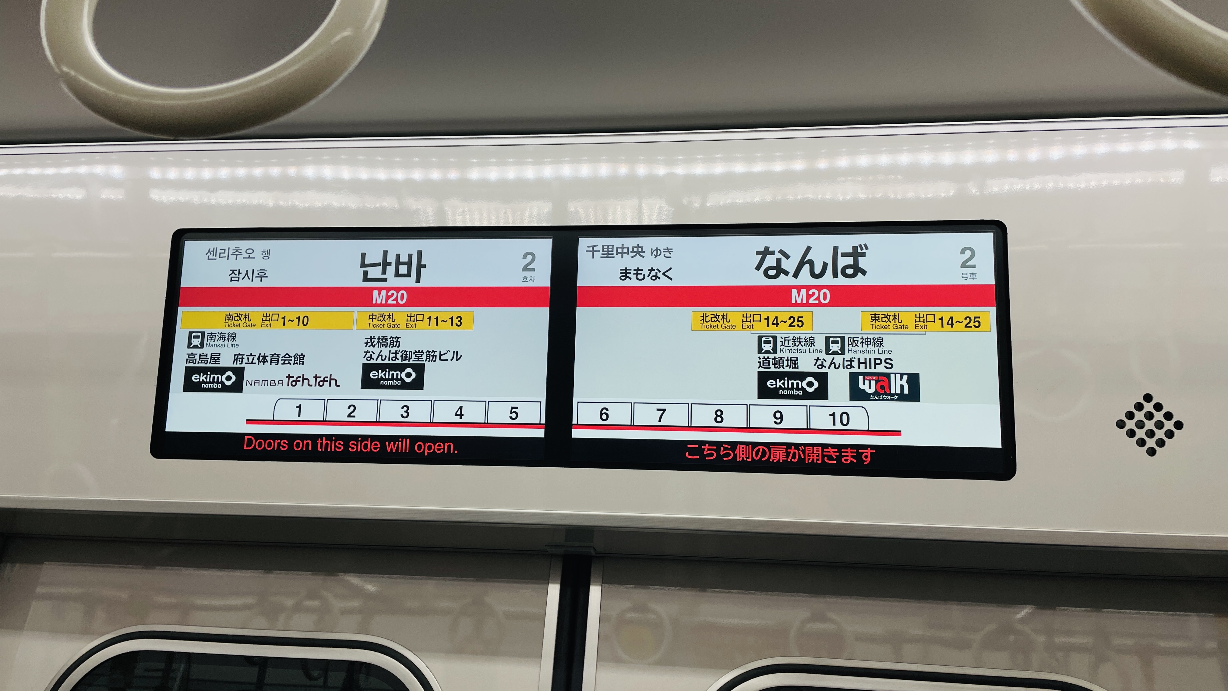 다이코쿠초역에서 난바역으로 가는 노선이 두개가 있다