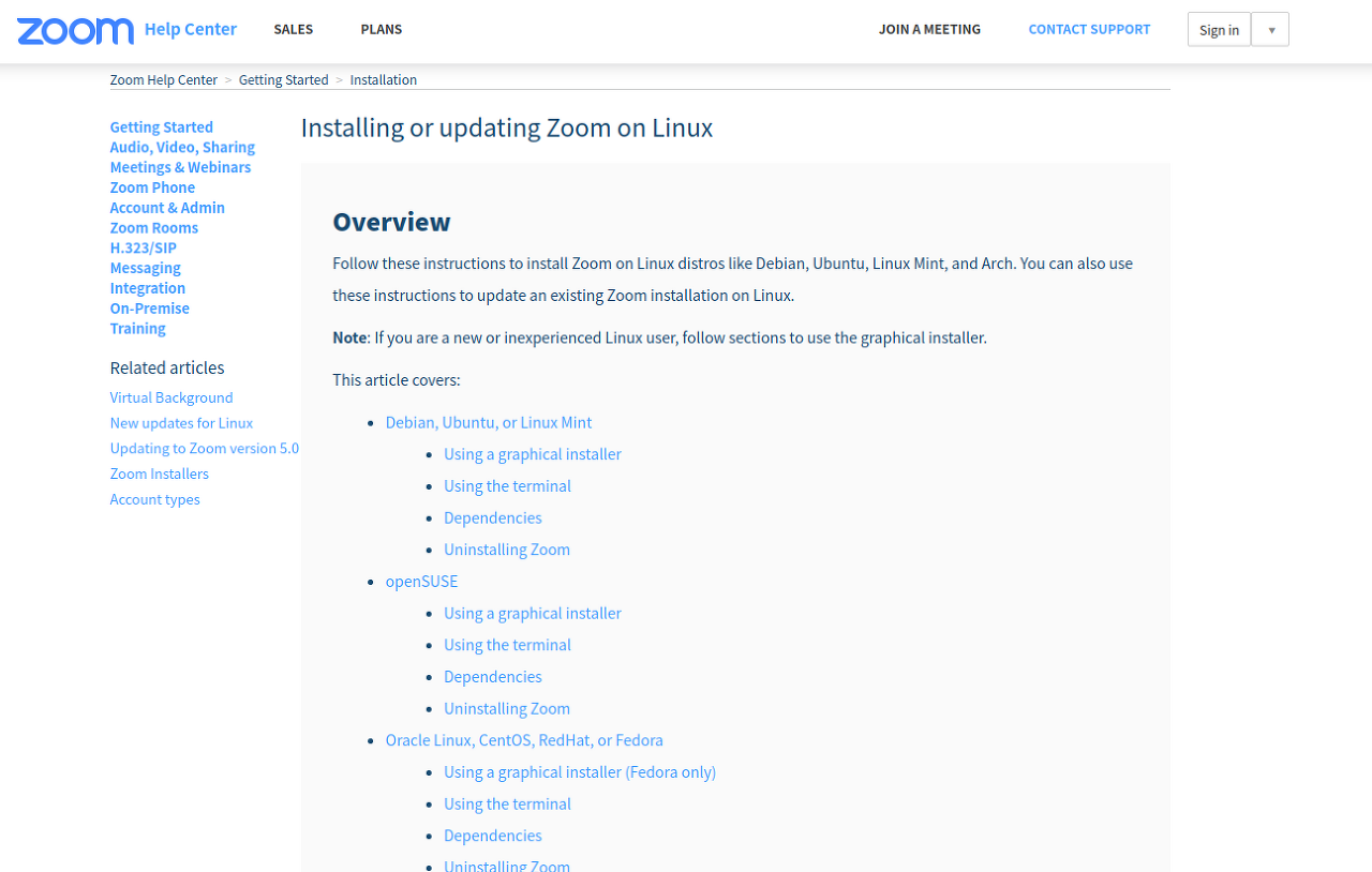 Overview Follow these instructions to install Zoom on Linux distros like Debian, Ubuntu, Linux Mint, and Arch. You can also use these instructions to update an existing Zoom installation on Linux. ...